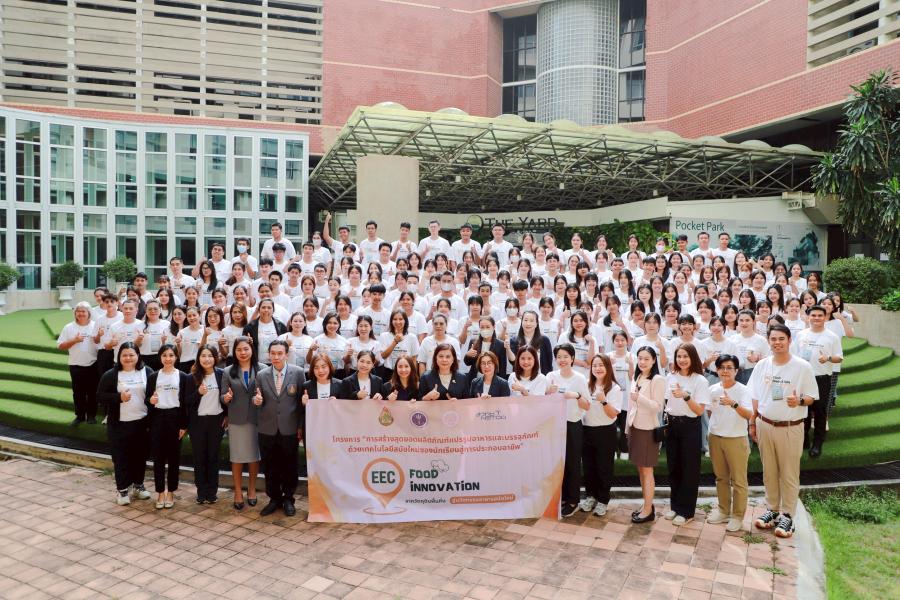 เมื่อเร็ว ๆ นี้ สำนักงานพัฒนาวิทยาศาสตร์และเทคโนโลยีแห่งชาติ (สวทช.) โดยฝ่ายบริการวิชาการและการประเมินหลักสูตรด้านพัฒนากำลังคน ร่วมกับสำนักงานคณะกรรมการการศึกษาขั้นพื้นฐาน (สพฐ.) และคณะอุตสาหกรรมอาหาร สถาบันเทคโนโลยีพระจอมเกล้าเจ้าคุณทหารลาดกระบัง (สจล.) จัดโครงการ “การสร้างสุดยอดผลิตภัณฑ์แปรรูปอาหารและบรรจุภัณฑ์ด้วยเทคโนโลยีสมัยใหม่ของนักเรียนสู่การประกอบอาชีพ (EEC FOOD INNOVATION)” เพื่อขับเคลื่อนการพัฒนาเยาวชนในเขตพัฒนาพิเศษภาคตะวันออก (EEC) ก้าวสู่การเป็นผู้ประกอบการอาหารรุ่นใหม่ โดยผสานเทคโนโลยีสมัยใหม่เข้ากับภูมิปัญญาท้องถิ่นอย่างสร้างสรรค์ เป็นกิจกรรมต่อเนื่องตลอด 7 เดือน ตั้งแต่เดือนมกราคม-กรกฎาคม 2568 มีนักเรียนระดับมัธยมศึกษาตอนปลายและครูที่ปรึกษาจาก 3 จังหวัด ได้แก่ ฉะเชิงเทรา ชลบุรี และระยอง จำนวน 30 ทีม รวม 150 คน เข้าร่วมโครงการ