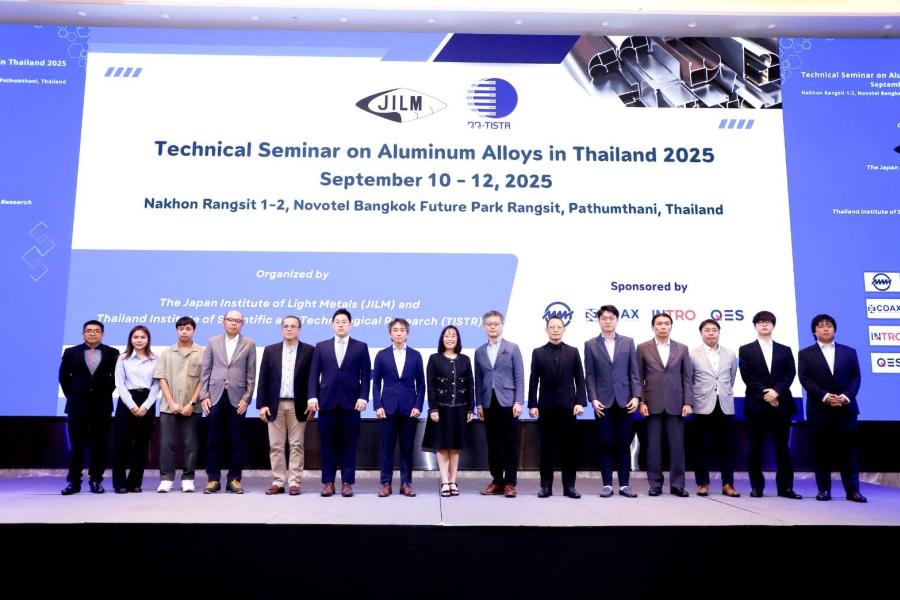 ดร.โศรดา วัลภา รองผู้ว่าการวิจัยและพัฒนาบริการอุตสาหกรรม สถาบันวิจัยวิทยาศาสตร์และเทคโนโลยีแห่งประเทศไทย (วว.) กระทรวงการอุดมศึกษา วิทยาศาสตร์ วิจัยและนวัตกรรม (อว.) เป็นประธานในพิธีเปิดการสัมมนาวิชาการ เรื่อง Technical Seminar on Aluminum Alloys in Thailand 2025 จัดโดย หน่วยฝึกอบรม กลุ่มบริการอุตสาหกรรม วว. ร่วมกับ สถาบัน Japan Institute of Light Metals (JILM) ประเทศญี่ปุ่น ระหว่างวันที่ 10-11 กันยายน 2568 ณ โรงแรมโนโวเทล ฟิวเจอร์พาร์ค รังสิต จ.ปทุมธานี