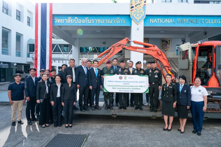 (วันที่ 11 กันยายน 2568) ณ วิทยาลัยป้องกันราชอาณาจักร: คณะนักศึกษา วิทยาลัยป้องกันราชอาณาจักร รุ่นที่ 67 หรือ วปอ.67 ได้กระทำพิธีส่งมอบ “รถขุดตักดัดแปลงทำลายทุ่นระเบิด PMN-2 สำหรับภูมิประเทศซับซ้อนสูงในพื้นที่ชายแดน” ให้แก่ พล.ท.สิรภพ ศุภวานิช เจ้ากรมการทหารช่าง กองทัพบก เพื่อนำไปใช้ในภารกิจการป้องกันประเทศ