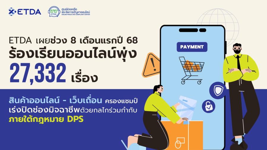 ETDA ชี้ 8 เดือนแรกปี 68 ร้องเรียนออนไลน์พุ่ง 2.7 หมื่น “สินค้าออนไลน์–เว็บเถื่อน” ครองแชมป์ เร่งปิดช่องมิจฉาชีพด้วยกลไกร่วมกำกับภายใต้กฎหมาย DPS