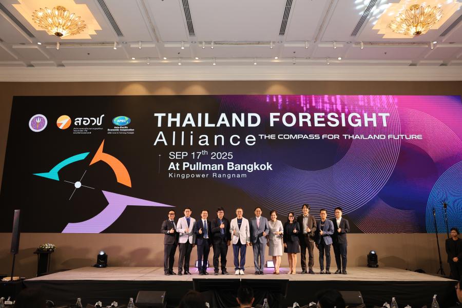 (17 กันยายน 2568) สำนักงานสภานโยบายการอุดมศึกษา วิทยาศาสตร์ วิจัยและนวัตกรรมแห่งชาติ (สอวช.) ร่วมกับศูนย์คาดการณ์เทคโนโลยีเอเปค (APEC Center for Technology Foresight: APEC CTF) จัดพิธีลงนามแสดงเจตจำนง (Letter of Intent) จัดตั้ง “ภาคีเครือข่ายการคาดการณ์อนาคตแห่งประเทศไทย” (Thailand Foresight Alliance) โดยมีผู้แทนจาก 12 หน่วยงานเข้าร่วมลงนาม เพื่อสร้างความร่วมมือในการพัฒนาระบบนิเวศด้านการคาดการณ์อนาคตของประเทศ ณ ห้อง Infinity 2 โรงแรมพูลแมน คิงเพาเวอร์ กรุงเทพฯ โดยมี ศาสตราจารย์ ดร. ศุภชัย ปทุมนากุล ปลัดกระทรวงการอุดมศึกษา วิทยาศาสตร์ วิจัยและนวัตกรรม (อว.) เป็นประธานกล่าวเปิดงาน