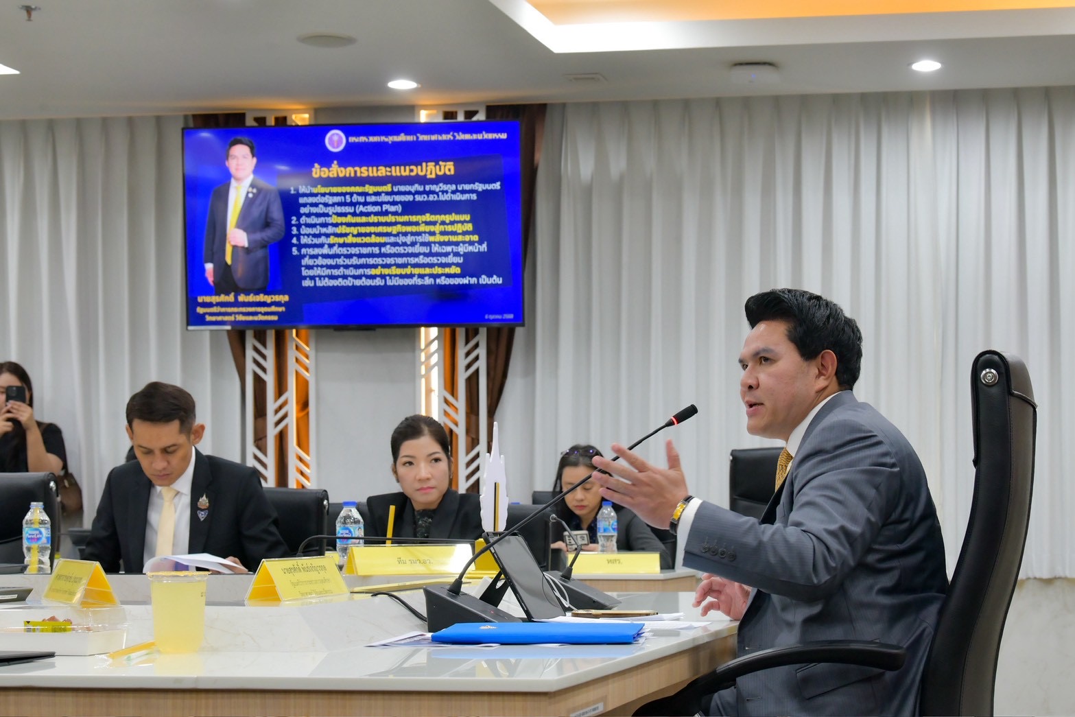 วันที่ 6 ต.ค.68 ที่กระทรวงการอุดมศึกษา วิทยาศาสตร์ วิจัยและนวัตกรรม(อว.) นายสุรศักดิ์ พันธ์เจริญวรกุล รมว.กระทรวง อว.ได้แถลงนโยบายการทำงานโดยมีผู้บริหารกระทรวง อว.นำโดย ศ.ดร.ศุภชัย ปทุมนากุล ปลัดกระทรวง อว.เข้าร่วม ที่ห้องประชุมชั้น 4 อาคารพระจอมเกล้า กระทรวง อว.(ฝั่งโยธี)