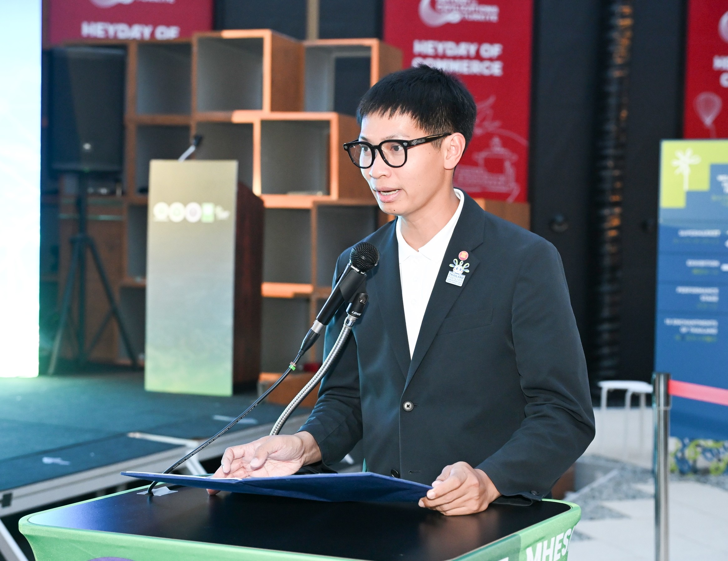นายกัมปนาท พิทักษ์พินิจนันท์ ผู้จัดการอาคารนิทรรศการไทย ได้กล่าวต้อนรับในนามผู้รับผิดชอบการจัดแสดงนิทรรศการ พร้อมขอบคุณกระทรวง อว. และ วช. ที่ร่วมสนับสนุนการจัดกิจกรรม ณ Thailand Pavilion งาน Expo 2025 Osaka Kansai
