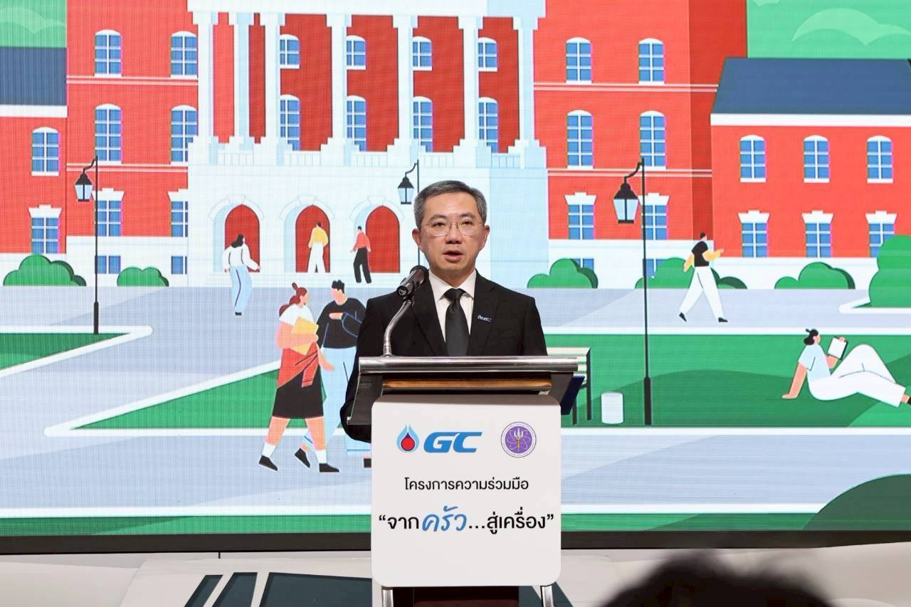 นายณะรงค์ศักดิ์ จิวากานันต์ ประธานเจ้าหน้าที่บริหาร GC เปิดเผยว่า “GC เชื่อมั่นในพลังของคนรุ่นใหม่และสถาบันการศึกษา ความร่วมมือกับกระทรวง อว. วันนี้ คือการนำศักยภาพของ GC ในการเปลี่ยนน้ำมันพืชใช้แล้วให้เป็นผลิตภัณฑ์มูลค่าสูงอย่าง SAF มาผสานกับเครือข่ายสถาบันอุดมศึกษา เพื่อมุ่งสร้างคุณค่าร่วม (Creating Shared Value) ระหว่างภาคอุตสาหกรรม ภาคการศึกษา และชุมชน อย่างเป็นรูปธรรม ซึ่งเราไม่เพียงลดการปล่อยก๊าซเรือนกระจก แต่กำลังสร้างวัฒนธรรมแห่งความยั่งยืนให้เกิดขึ้นจริงในกลุ่มเยาวชนที่จะเป็นกำลังสำคัญของชาติต่อไป”