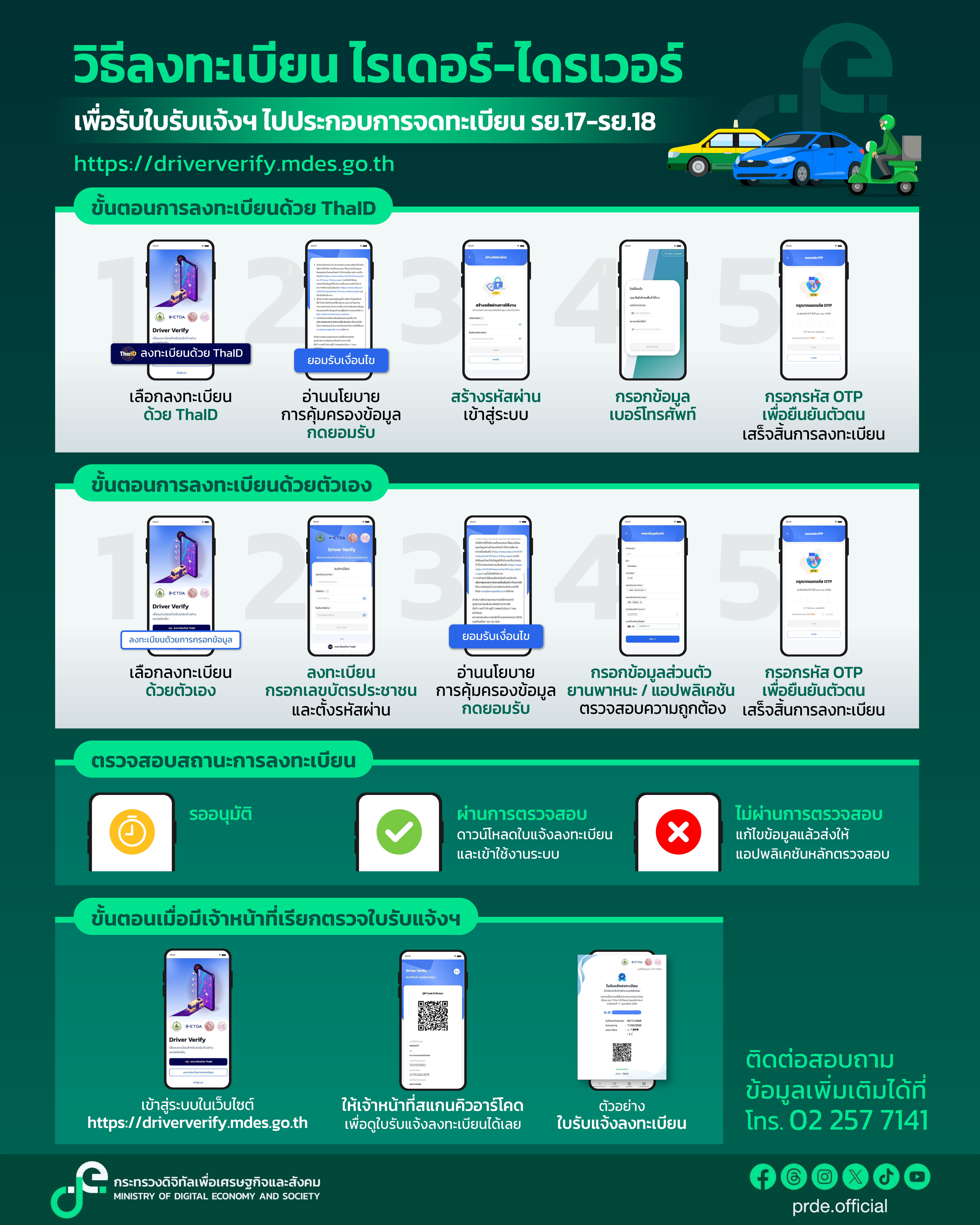 · เปิดให้ลงทะเบียนแสดงเจตจำนงผ่านเว็บไซต์ https://driververify.mdes.go.th(ล็อกอินผ่าน Thai ID) ไปจนถึงวันที่ 28 ก.พ. 2569