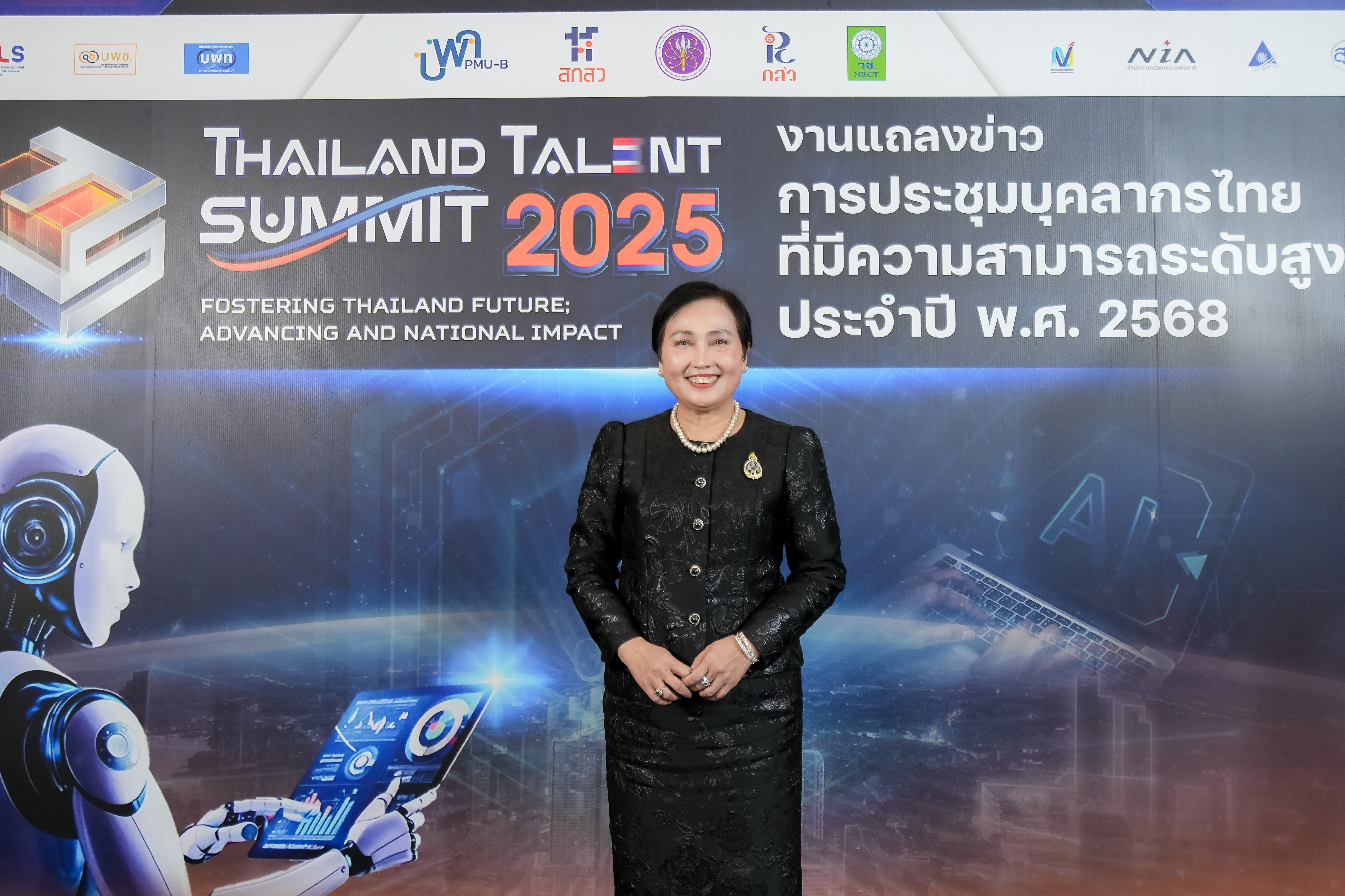 นางสาวเสาวนีย์ มุ่งสุจริตการ รองผู้อำนวยการสำนักงานการวิจัยแห่งชาติ (วช.) กล่าวว่า “วช. ให้ความสำคัญในการพัฒนากำลังคนตั้งแต่ทุนระดับบัณฑิตศึกษา ตลอดจนส่งเสริมผู้มีศักยภาพสูงให้เข้าสู่เส้นทางอาชีพของบุคลากรกลุ่มวิทยาศาสตร์ วิจัยและนวัตกรรม (ววน.) ซึ่งทำงานใกล้ชิดกับนักวิจัยและหน่วยวิจัยทั่วประเทศ มองว่าบทบาทของนักวิจัยนั้นกว้างไกลกว่าการเป็นเพียงผู้ผลิตบทความวิชาการ แต่คือ ผู้สร้าง ’หลักฐานเชิงประจักษ์’ (Evidence Generators) ที่มีความสำคัญอย่างยิ่งในการรองรับการตัดสินใจเชิงนโยบาย การออกแบบมาตรการภาครัฐ และการสร้างสรรค์นวัตกรรมที่สามารถนำไปใช้ประโยชน์และแก้ไขปัญหาในสังคมได้อย่างเป็นรูปธรรม สำหรับบุคลากรที่มีความสามารถระดับสูงนั้น พวกเขามักจะเป็น ผู้นำทีมวิจัย ผู้บุกเบิกเครือข่ายวิชาการ และเป็น ’ต้นแบบ’ (Role Model) ของนักวิจัยรุ่นใหม่ในระบบ ววน. การเสริมพลังและจัดหาพื้นที่ให้กลุ่มบุคลากรเหล่านี้ได้แลกเปลี่ยนมุมมองและประสบการณ์กับภาคนโยบาย ภาคเอกชน และภาคสังคม ผ่านเวทีอย่าง Thailand Talent Summit 2025 จึงมีความสำคัญอย่างมาก เพราะจะช่วยให้เกิดความเข้าใจร่วมกันและ มองเห็น ’เส้นทาง’ (Pathway) ที่ชัดเจนว่า งานวิจัยจะสามารถเดินทางจากห้องทดลองไปสู่การใช้ประโยชน์จริงและสร้างผลกระทบเชิงบวกต่อสังคมได้อย่างไร”