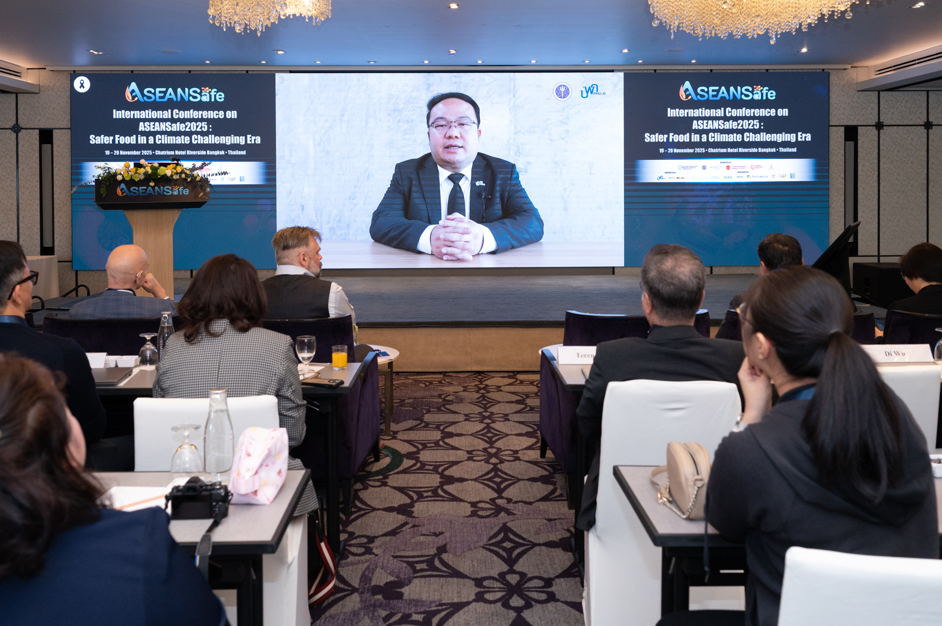 (วันที่ 19 พฤศจิกายน 2568) ณ โรงแรมชาเทรียม ริเวอร์ไซด์ กรุงเทพฯ: กระทรวงการอุดมศึกษา วิทยาศาสตร์ วิจัยและนวัตกรรม (อว.) สำนักงานพัฒนาวิทยาศาสตร์และเทคโนโลยีแห่งชาติ (สวทช.) ร่วมกับ มหาวิทยาลัยธรรมศาสตร์ ศูนย์วิจัยนานาชาติด้านความมั่นคงอาหาร (IJC-FOODSEC) สหภาพยุโรป หน่วยบริหารและจัดการทุนด้านการพัฒนากำลังคนและทุนด้านการพัฒนาสถาบันอุดมศึกษา การวิจัยและการสร้างนวัตกรรม (บพค.) มูลนิธิบัณฑิตยสภาวิทยาศาสตร์และเทคโนโลยีแห่งประเทศไทย (บวท.) จัดงานประชุมนานาชาติ ASEANSafe 2025: Building Resilient Communities for a Safe ASEAN ระหว่าง วันที่ 19-20 พฤศจิกายน 2568 เพื่อเป็นเวทีระดับนานาชาติในการแลกเปลี่ยนองค์ความรู้ นวัตกรรม และแนวทางปฏิบัติที่ดีที่สุดด้านความปลอดภัยอาหารภายใต้ความท้าทายจากการเปลี่ยนแปลงสภาพภูมิอากาศ ครอบคลุมทุกห่วงโซ่อาหาร พร้อมผลักดันความร่วมมือเชิงยุทธศาสตร์ การถ่ายทอดเทคโนโลยี และการพัฒนาศักยภาพบุคลากรในภูมิภาค