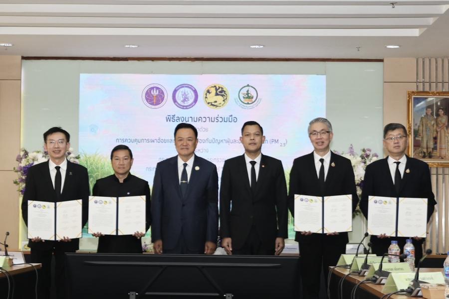 เมื่อวันที่ 25 ธันวาคม 2568 ศ.ดร.ศุภชัย ปทุมนากุล ปลัดกระทรวงการอุดมศึกษา วิทยาศาสตร์ วิจัยและนวัตกรรม (อว.) ร่วมพิธีลงนามบันทึกความเข้าใจ (MOU) ว่าด้วยความร่วมมือเพื่อแก้ไขปัญหาการเผาอ้อยและฝุ่นละอองขนาดเล็ก (PM2.5) ร่วมกับ ดร.ณัฐพล รังสิตพล ปลัดกระทรวงอุตสาหกรรม (อก.) นายอรรษิษฐ์ สัมพันธรัตน์ ปลัดกระทรวงมหาดไทย (มท.) และนายพชร อนันตศิลป์ ปลัดกระทรวงดิจิทัลเพื่อเศรษฐกิจและสังคม (DE) โดยมีนายอนุทิน ชาญวีรกูล นายกรัฐมนตรีและรัฐมนตรีว่าการกระทรวงมหาดไทย นายธนกร วังบุญคงชนะ รัฐมนตรีว่าการกระทรวงอุตสาหกรรม พร้อมด้วยคณะผู้บริหารจากทั้ง 4 กระทรวง ร่วมเป็นสักขีพยาน ณ ห้องประชุม อก. 1 ชั้น 2 สำนักงานปลัดกระทรวงอุตสาหกรรม