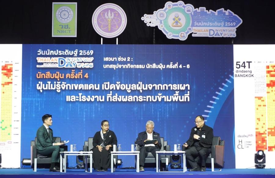 วันพุธที่ 7 มกราคม 2568 สำนักงานการวิจัยแห่งชาติ (วช.) กระทรวงการอุดมศึกษา วิทยาศาสตร์ วิจัยและนวัตกรรม โดยศูนย์รวมผู้เชี่ยวชาญด้านมลพิษอากาศและภูมิอากาศ (Hub of Talents on Air Pollution and Climate: HTAPC) และกรุงเทพมหานคร จัดการเสวนาในหัวข้อ “บทสรุป นักสืบฝุ่น The Series เพื่อเป้าหมายอากาศสะอาด” ภายในงานวันนักประดิษฐ์ ประจำปี 2569 ณ เวทีกิจกรรมกลาง ศูนย์นิทรรศการและการประชุมไบเทค บางนา กรุงเทพมหานคร โดย ดร.วิภารัตน์ ดีอ่อง ผู้อำนวยการสำนักงานการวิจัยแห่งชาติ มอบหมายให้ ดร.สุพัฒน์ หวังวงศ์วัฒนา ผู้อำนวยการศูนย์รวมผู้เชี่ยวชาญด้านมลพิษอากาศและภูมิอากาศ กล่าวเปิดการเสวนาในครั้งนี้