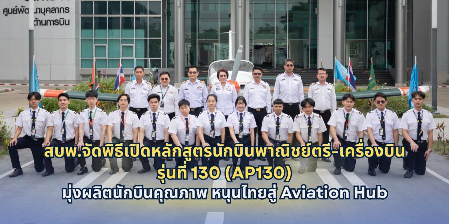 สำหรับศิษย์การบินรุ่น AP130 จำนวน 13 คน เป็นผู้เข้ารับการฝึกอบรมในรูปแบบทุนส่วนตัวทั้งหมด ประกอบด้วย นักศึกษาหลักสูตรวิศวกรรมศาสตรบัณฑิต สาขาวิชาอิเล็กทรอนิกส์การบิน วิชาโทนักบินพาณิชย์ตรี ของ สบพ. จำนวน 8 คน และผู้สำเร็จการศึกษาจากสถาบันการศึกษาต่าง ๆ อีก 5 คน โดยจะเข้ารับการฝึกอบรมในหลักสูตรที่ได้รับการรับรองจากสำนักงานการบินพลเรือนแห่งประเทศไทย (กพท.) รวมระยะเวลา 70 สัปดาห์ แบ่งเป็นการฝึกอบรมภาคพื้น 38 สัปดาห์ ณ สบพ. กรุงเทพฯ และการฝึกภาคอากาศ 32 สัปดาห์ ณ ศูนย์ฝึกการบิน อำเภอหัวหิน จังหวัดประจวบคีรีขันธ์ เพื่อเสริมสร้างองค์ความรู้ ทักษะ และสมรรถนะด้านการบินอย่างรอบด้าน ให้มีความพร้อมในการขอรับรองใบอนุญาตผู้ประจำหน้าที่นักบินพาณิชย์ตรีของ กพท.ต่อไปได้ โดยศิษย์การบินทุกคนได้ผ่านการตรวจร่างกายและจิตวิทยาการบินตามเกณฑ์ที่กำหนดอย่างเคร่งครัด