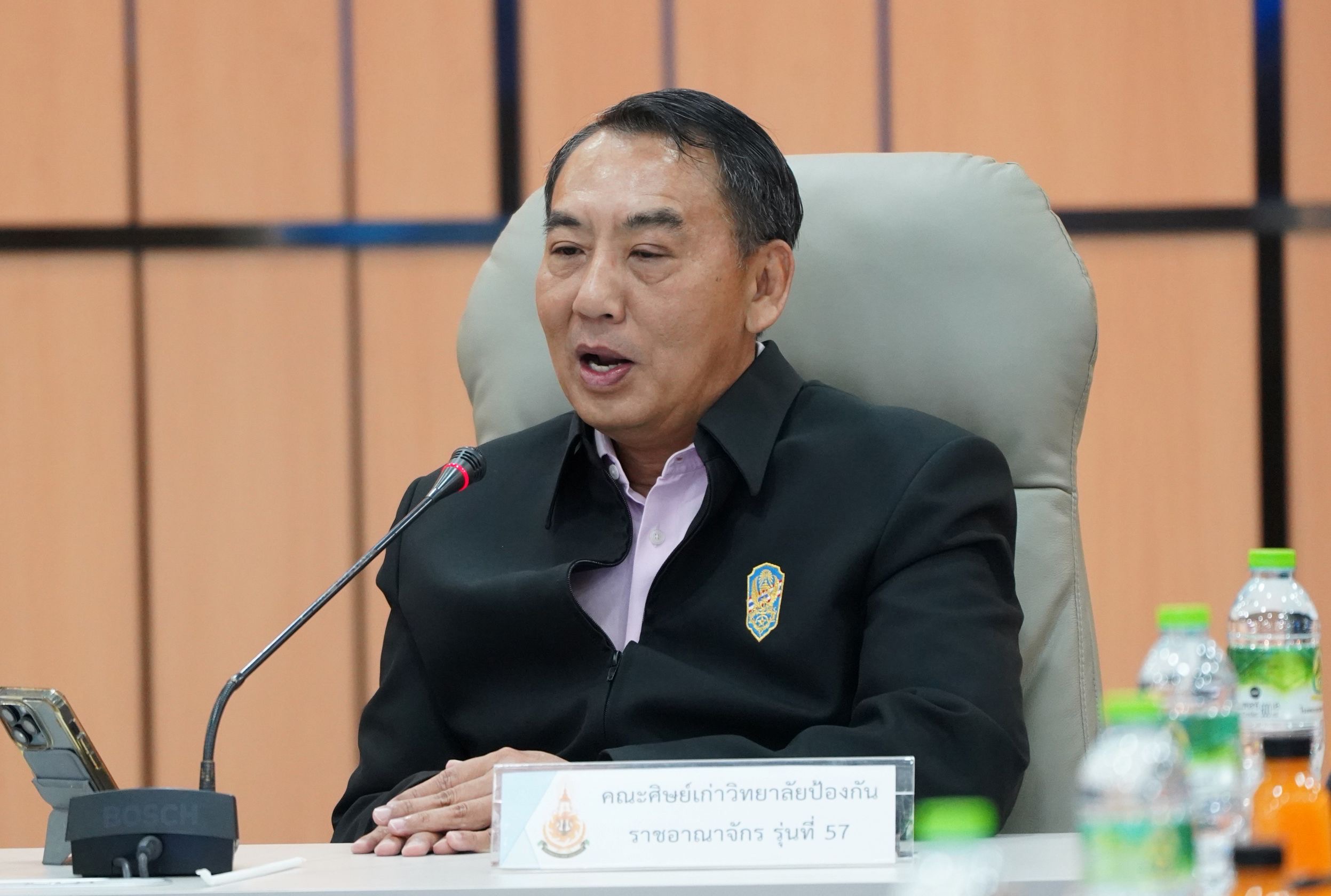 “ตั้งแต่เกิดเหตุการณ์ไม่สงบคณะศิย์เก่า วปอ.57 ได้หารือกัน และตระหนักถึงความเสียสละของน้องๆ ทหารแนวหน้าที่ปกป้องอธิปไตยให้แนวหลังอยู่อย่างสงบปลอดภัย โครงการสนับสนุนการผลิตสายรัดห้ามเลือดนี้จะเป็นสิ่งที่แนวหลังได้ตอบแทนการเสียสละของแนวหน้า เรายึดหลักการว่าจะทำอะไรที่เป็นประโยชน์ต่อประเทศชาติ เราหวังว่าสายรัดห้ามเลือดที่มอบให้แก่น้องๆ ทหารจะไม่ถูกหยิบออกมาใช้ เพราะนั่นหมายความว่าท่านปลอดภัย แต่ถ้าถูกหยิบออกมาใช้ก็ขอให้ท่านได้กลับไปหาครอบครัวอันเป็นที่รักอย่างปลอดภัย” ประธานรุ่น วปอ.57 กล่าว