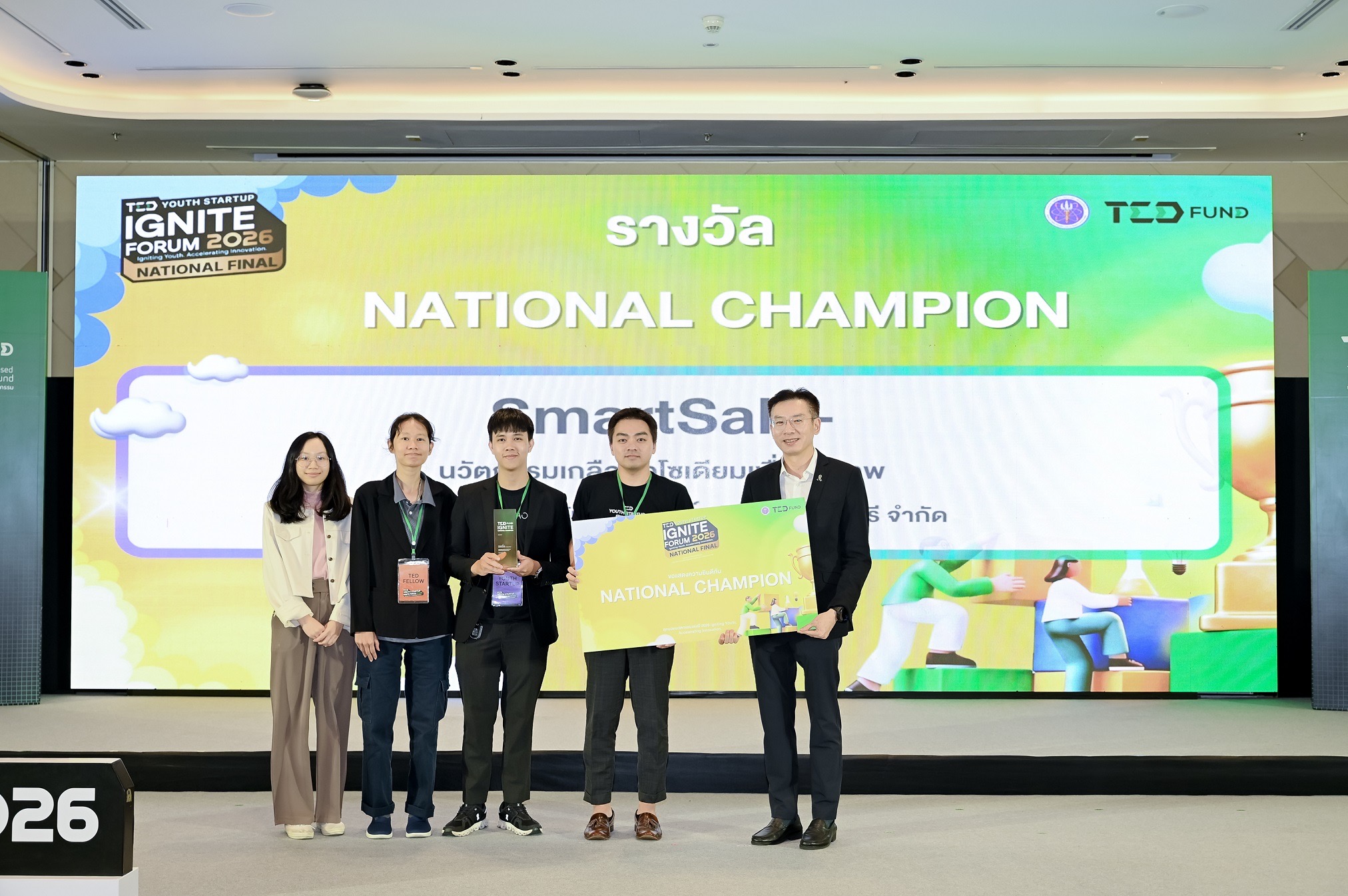 กองทุนพัฒนาผู้ประกอบการเทคโนโลยีและนวัตกรรม (TED Fund) ภายใต้กระทรวงการอุดมศึกษา วิทยาศาสตร์ วิจัยและนวัตกรรม (อว.) เดินหน้าสร้างระบบนิเวศสตาร์ทอัพไทยอย่างต่อเนื่อง จัดงาน “TED Youth Startup – IGNITE Forum 2026 : National Final” รอบชิงชนะเลิศระดับประเทศ เวทีใหญ่แห่งปี เฟ้นหาสุดยอดนวัตกรรมจากเยาวชนและผู้ประกอบการรุ่นใหม่ทั่วประเทศ เพื่อเปิดพื้นที่ให้สตาร์ทอัพรุ่นใหม่ได้แสดงศักยภาพ นำเสนอผลงานนวัตกรรมที่พร้อมต่อยอดสู่ธุรกิจจริง โดยมี ศ.ดร.ศุภชัย ปทุมนากุล ปลัดกระทรวง อว. เป็นประธานในพิธีมอบรางวัล พร้อมด้วย น.สพ.ดร. สนัด วงศ์ทวีทอง ผู้จัดการกองทุนฯ และคณะกรรมการผู้ทรงคุณวุฒิ เข้าร่วมแสดงความยินดี ณ ศูนย์การประชุมแห่งชาติสิริกิติ์ กรุงเทพมหานคร