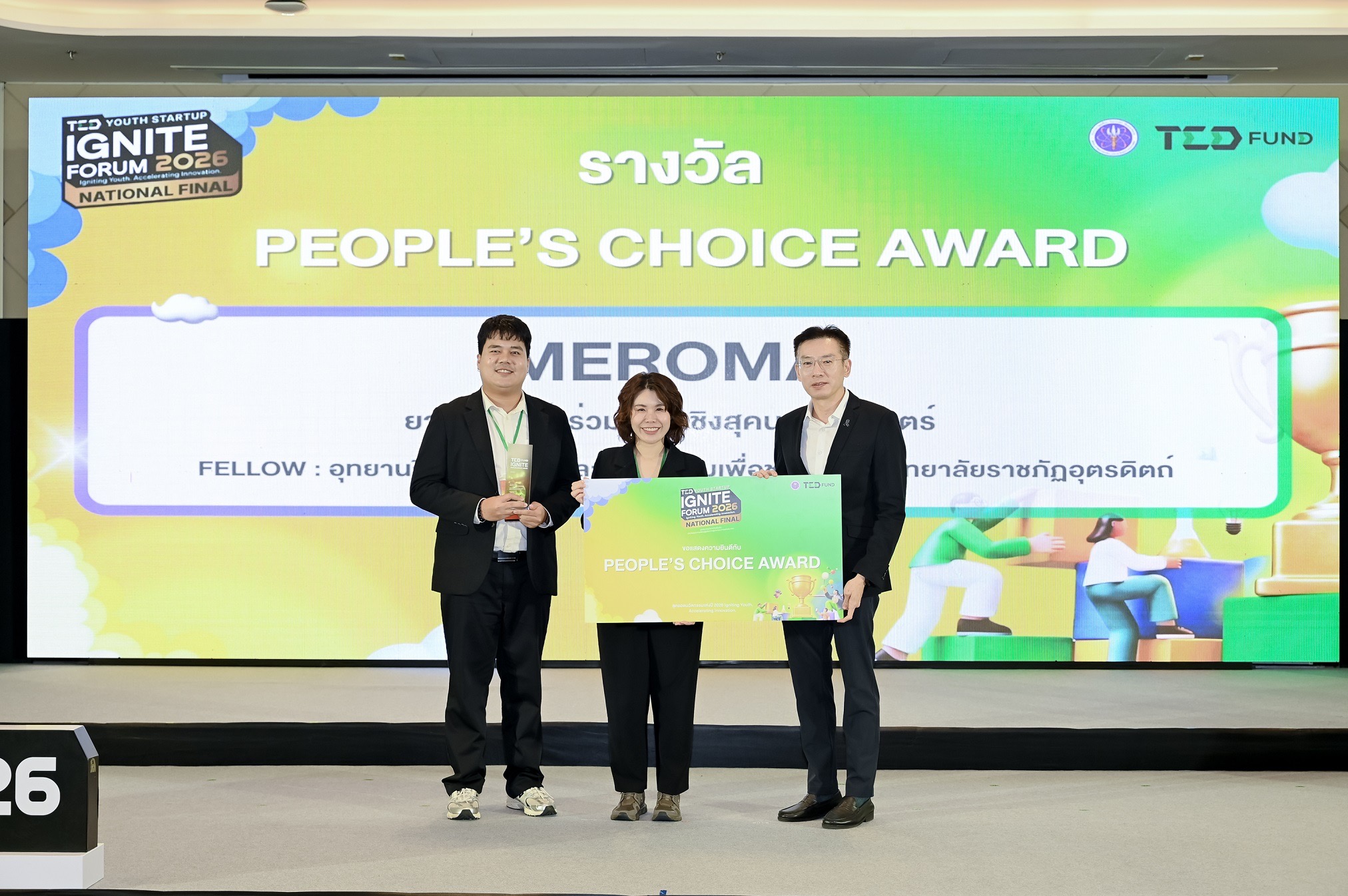 และรางวัล People’s Choice Award 2026 ตกเป็นของทีม MENORA ยาพิมเสนน้ำร่วมสมัยเชิงสุคนธจิตศาสตร์ โดย อุทยานวิทยาศาสตร์และนวัตกรรมเพื่อชุมชน มหาวิทยาลัยราชภัฎ อุตรดิตถ์ ที่ได้รับคะแนนนิยมจากผู้ชมสูงสุด